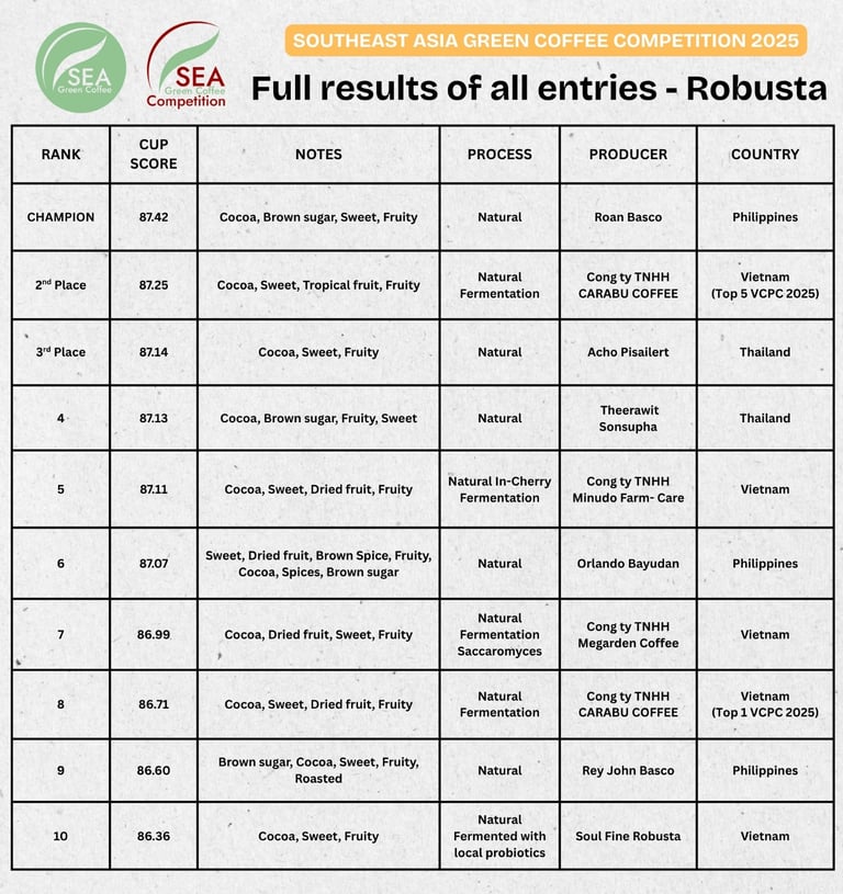 Formats: Arabica; Robusta; Liberica (pilot cupping form)